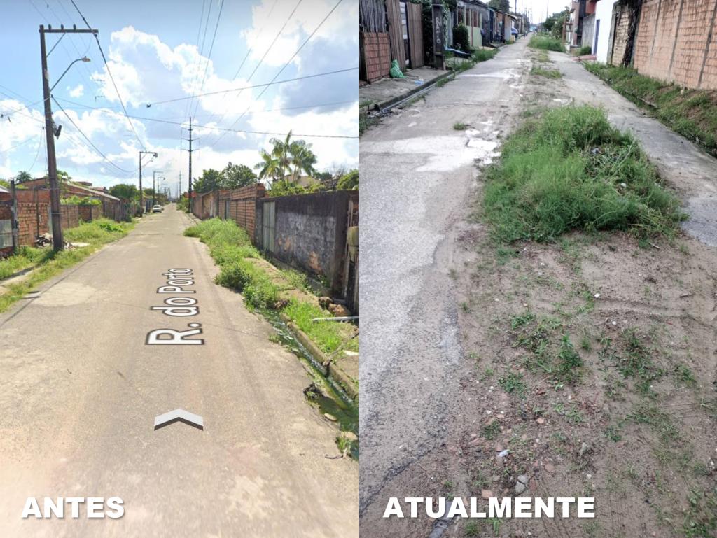 A reclamação chegou até o Blog PAAR via WhatsApp no último sábado (10). A moradora, Aline, representando a insatisfação da vizinhança, enviou algumas fotos mostrando o estado em que se encontra a rua do Porto, no Conjunto Nova Jerusalém, localizado no entorno do Campo do Urubu.